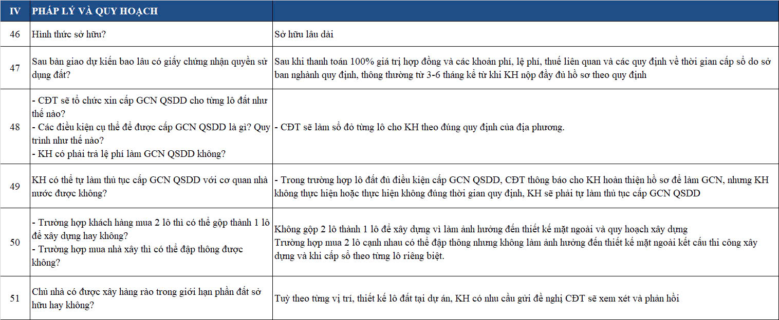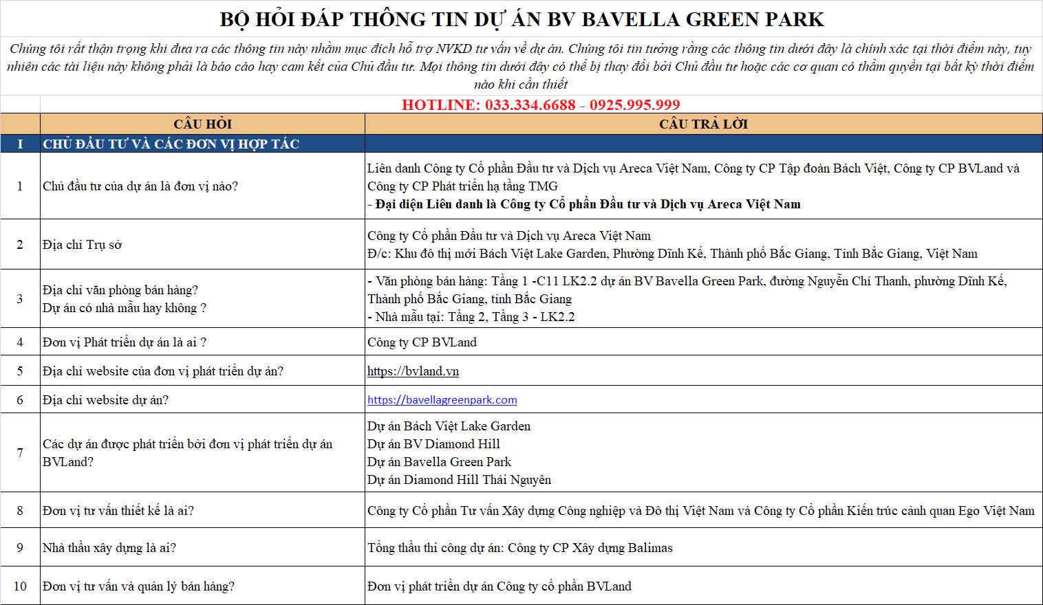 BỘ HỎI ĐÁP THÔNG TIN DỰ ÁN BV BAVELLA GREEN PARK